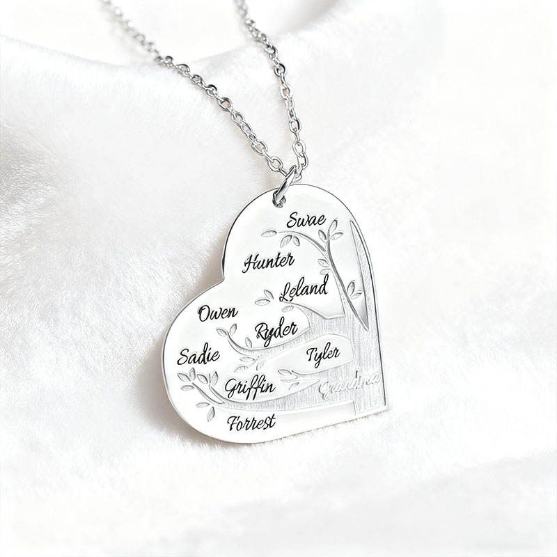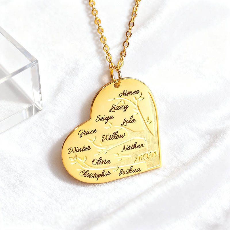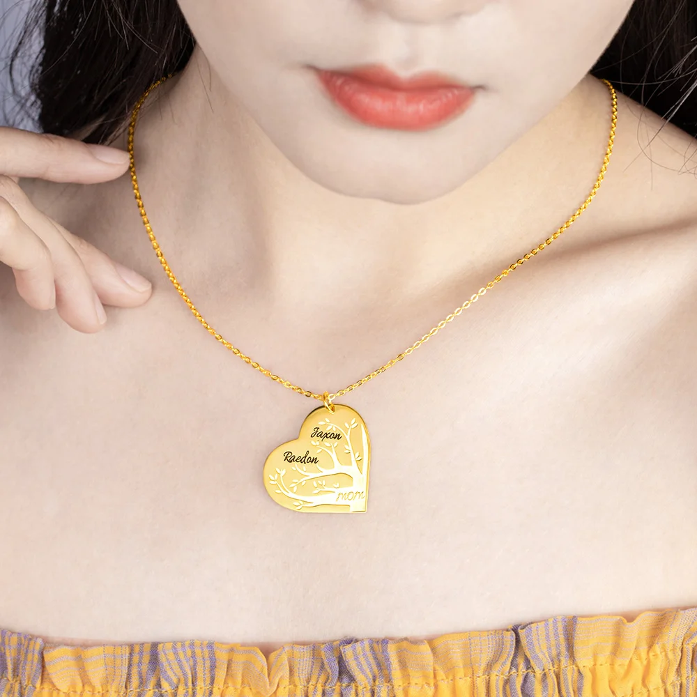 Custom -Personalized Heart Family Tree Necklace with Custom Names – Keepsake Gift for Mom-everydaybliss