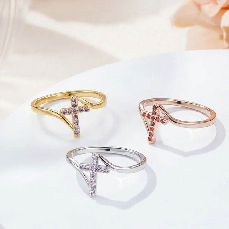everydaybliss Sparkling Cross Zircon Ring – Gold, Silver, or Rose Gold