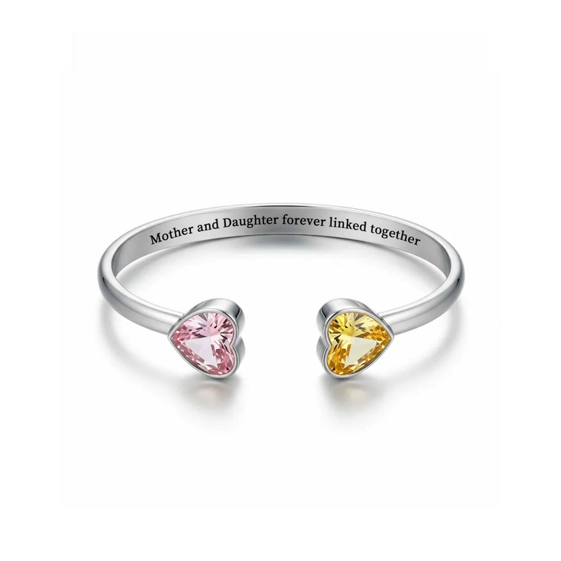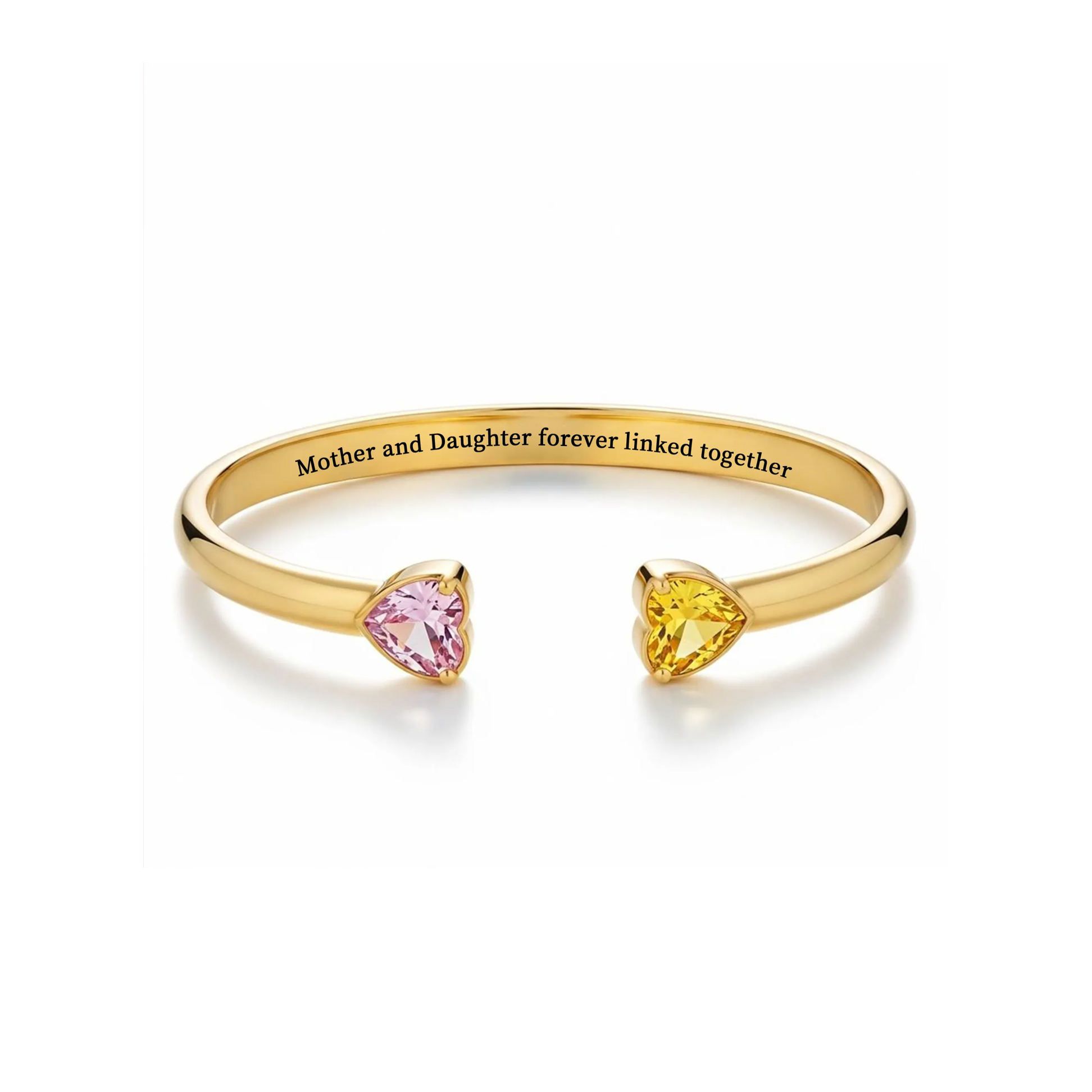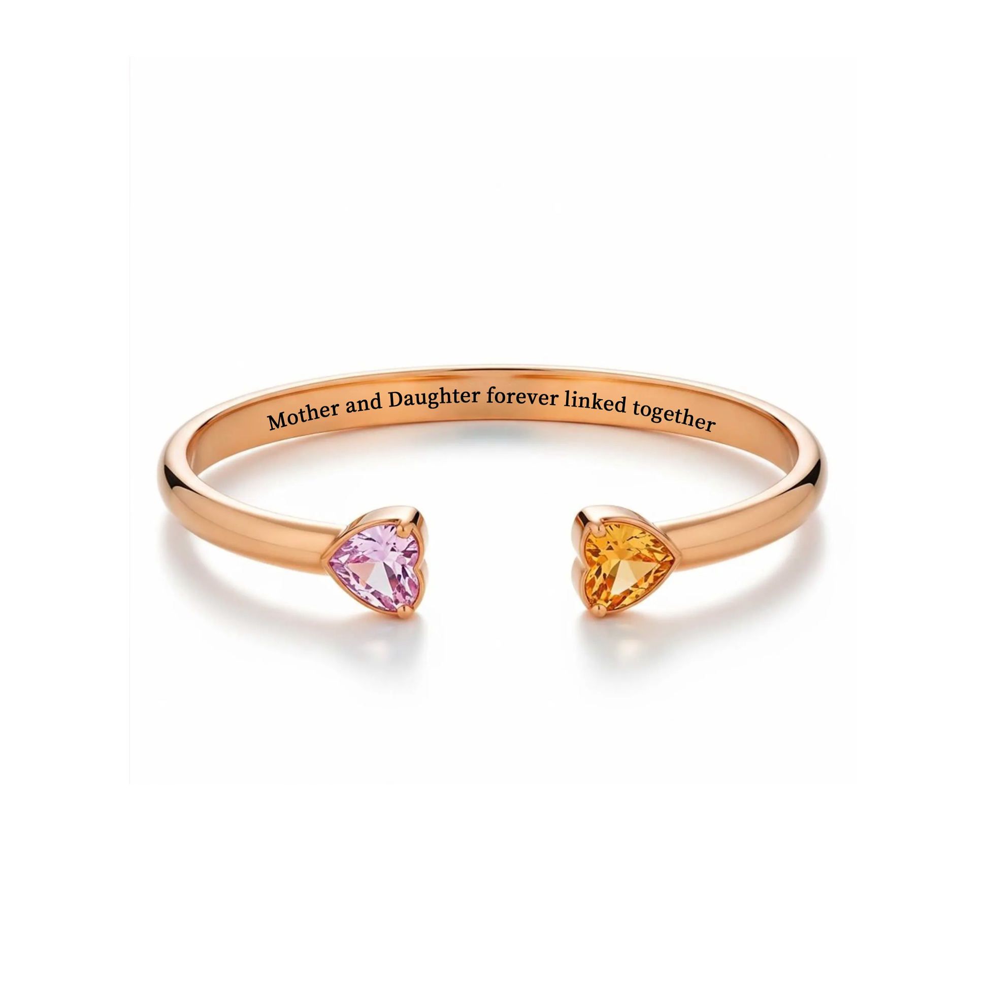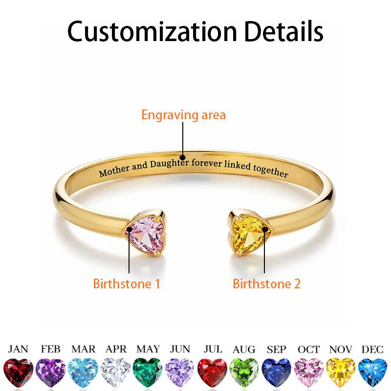 Custom-heart-shape Birthstone Bangle with Engraving-Personalized Jewelry Gift for mon,lover,wife-everydaybliss