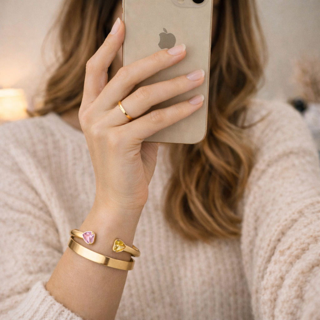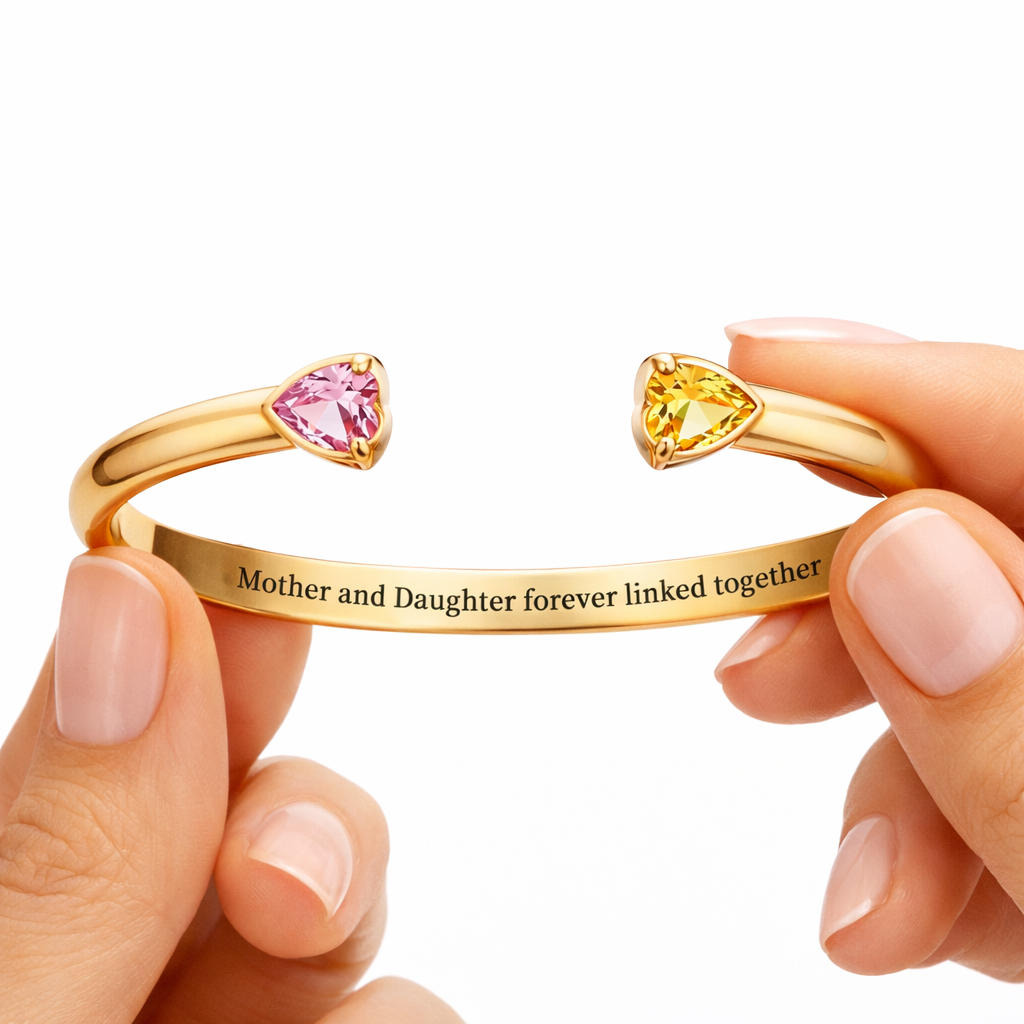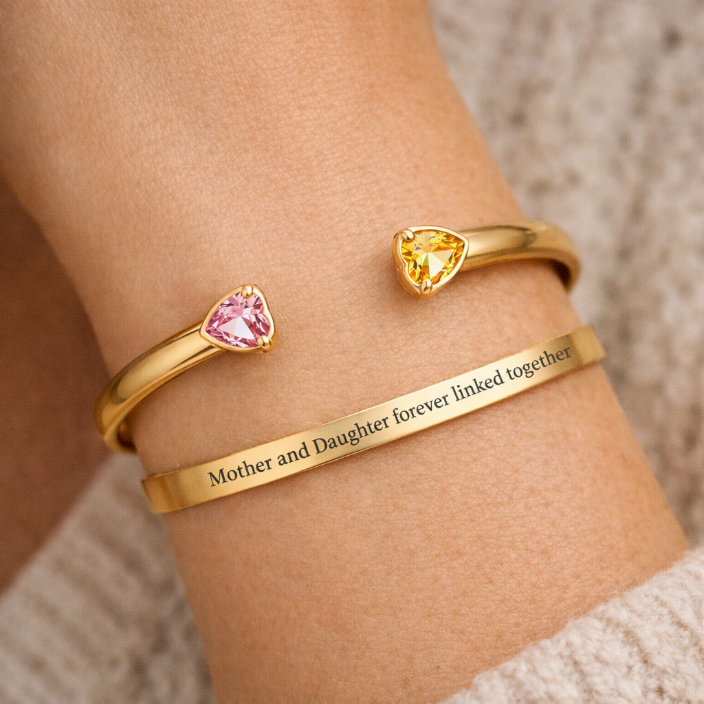 Custom-heart-shape Birthstone Bangle with Engraving-Personalized Jewelry Gift for mon,lover,wife-everydaybliss