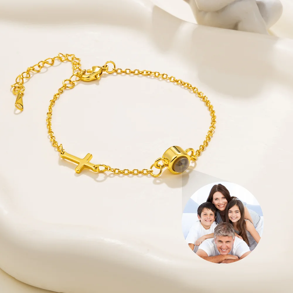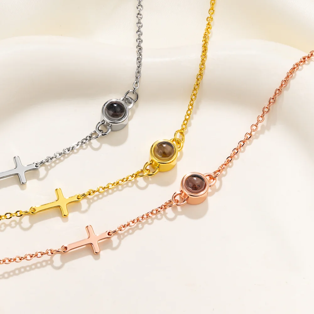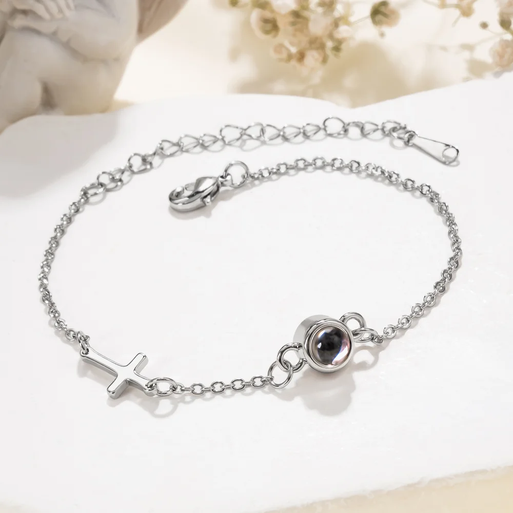 Custom-Personalized Projection Photo Bracelet with Cross Pendant-everydaybliss